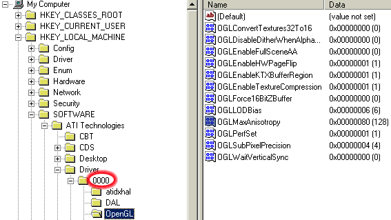 Красным обведено число, которое может быть различным, поэтому имейте это в виду (если устанавливали на компьютер более одной карты от ATI, то в этой ветке может быть и 0001, и 0002 и т.д.).