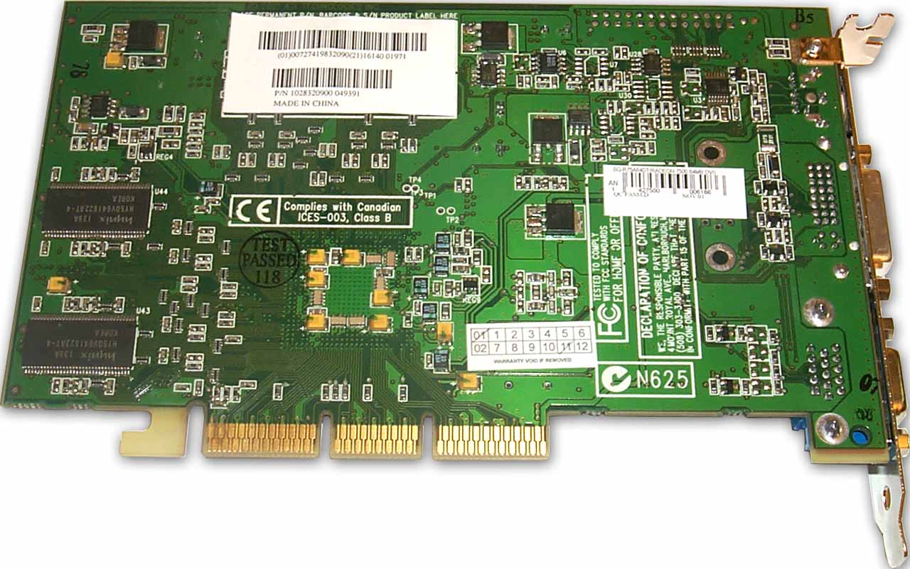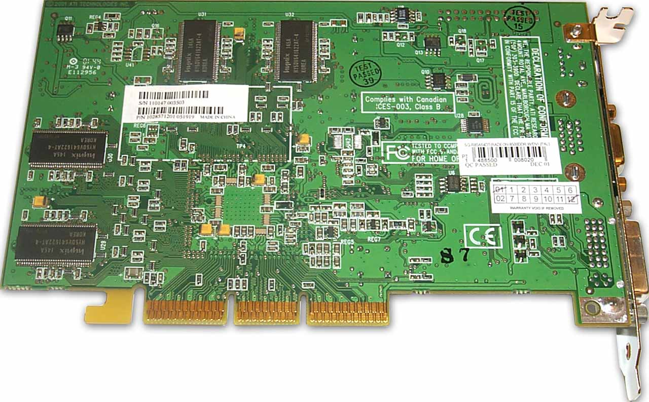 Микросхемы памяти марки Hynix, время выборки 4 ns, что соответствует 250 (500) МГц. Мы видим, что в этот раз на карте установлена не точно такая же память, которую мы уже видели в обзоре ATI RADEON 8500, а также в последующих. Однако и чип, и память тактуются на уровне 250/250 (500) МГц. То есть перед нами, по сути, RADEON 8500 LE, который ATI объявила совсем недавно. Хотя нигде не сказано про это, то есть рассматриваемая нами карта не имеет никаких указаний на то, что это RADEON с пониженными частотами. И ранее имевшее место у меня легкое подозрение уже превратилось в уверенность, что и в дальнейшем китайские производители не будут честно приводить данные о лежащей в коробке карте с более низкими частотами, то есть на базе RADEON 8500 LE. Хотя и так уже всем понятно, что видеокарт от партнеров ATI, базируемых на 275-мегагерцовых RADEON 8500, просто не будет. Поэтому легко понять, на какой частоте работает карта: если это Retail-поставка от ATI, то 275 МГц, если от партнера — то 250 МГц.