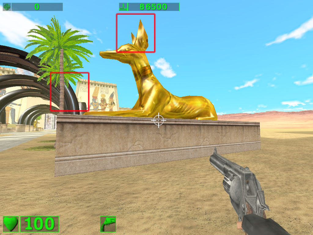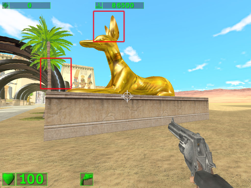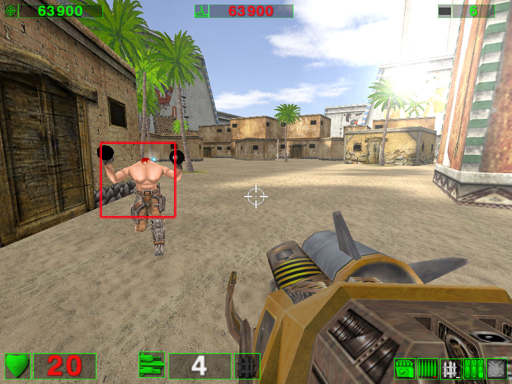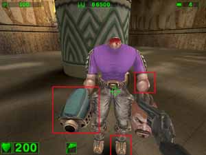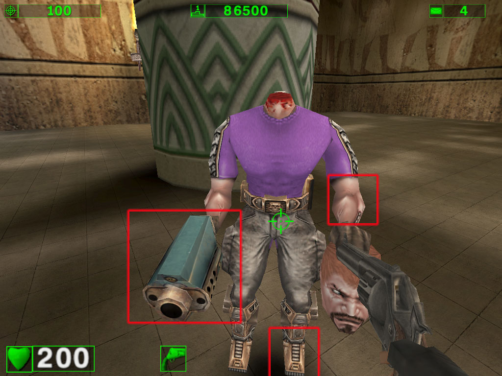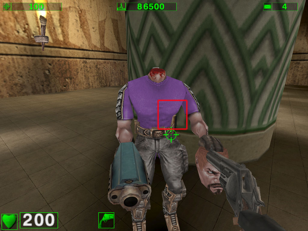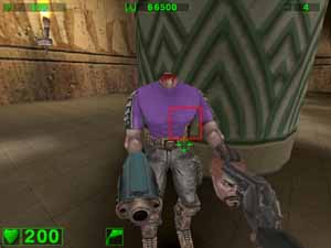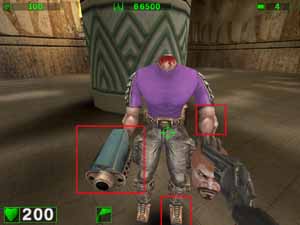 Вот уже при таком режиме эффекты видны и даже сильно. Конечно, не обошлось без издержек: посмотрите на дутую "пушку" в руке у… ммм… безголового-с-головой-в-руке. Да и черные "торы" над дорожкой уже больше на резиновые трубы похожи :-)