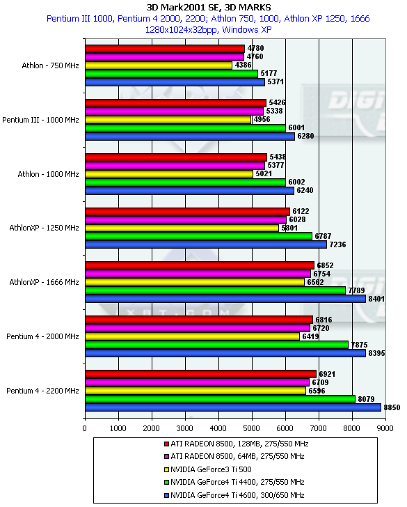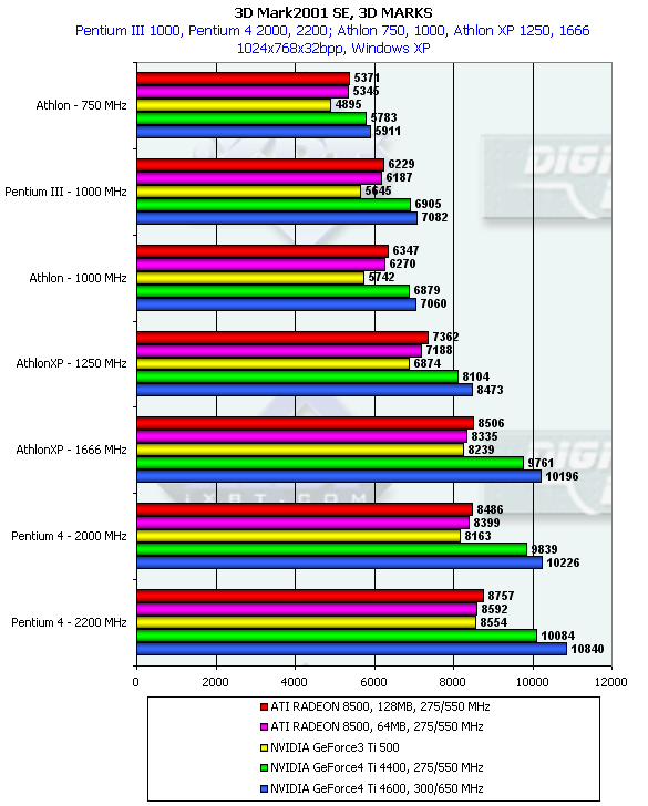 - 3DMark2001 SE (MadOnion) синтетический тест, демонстрирующий работу платы в DirectX 8.1;