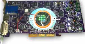 | На видеокарте установлены модули памяти от Samsung со временем выборки 3.6ns, что соответствует примерно частоте работы 275 (550) МГц, на которой память и работает. GPU функционирует на обычной для Ti 4400 частоте 275 МГц. | ![]() |