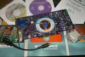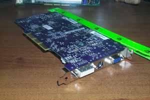 Если рассматривать карты дальше, то заметим, что у обеих плат распаяны гнезда DVI и d-Sub. Подключение двух CRT-мониторов осуществляется при помощи переходника DVI-to-VGA, который входит в комплект поставок. Обе карты оснащены Tv-out, который осуществляется при помощи уже хорошо знакомого кодека Conexant: