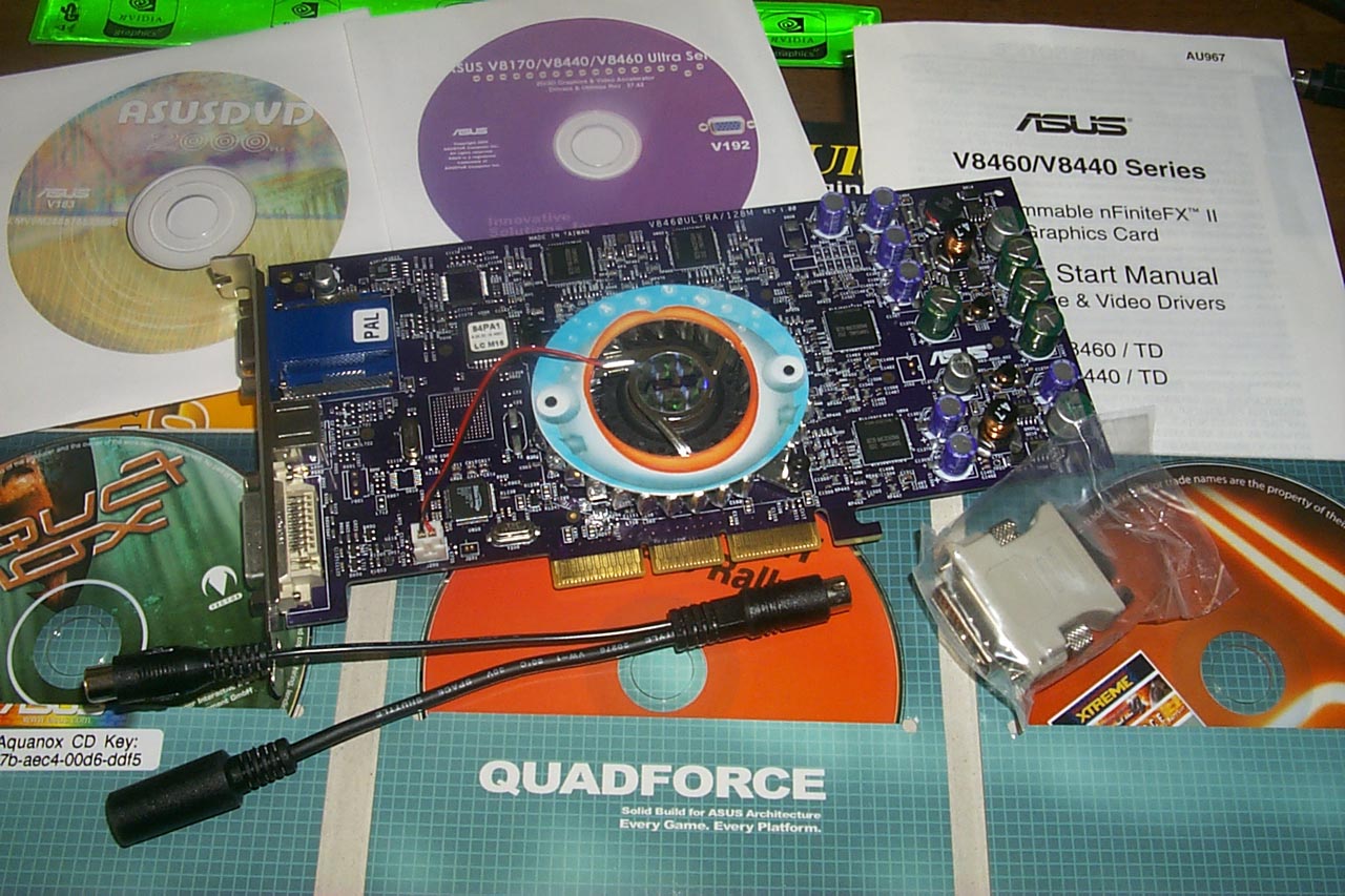 А в ней (лаборатории) побывали, как я уже сказал, весьма интересные продукты: ASUS V8440 и V8460Ultra. Платы Обе карты имеют AGP x2/x4 интерфейс, 128 МБ DDR SGRAM памяти, размещенной в 8-ми микросхемах на обеих сторонах PCB.