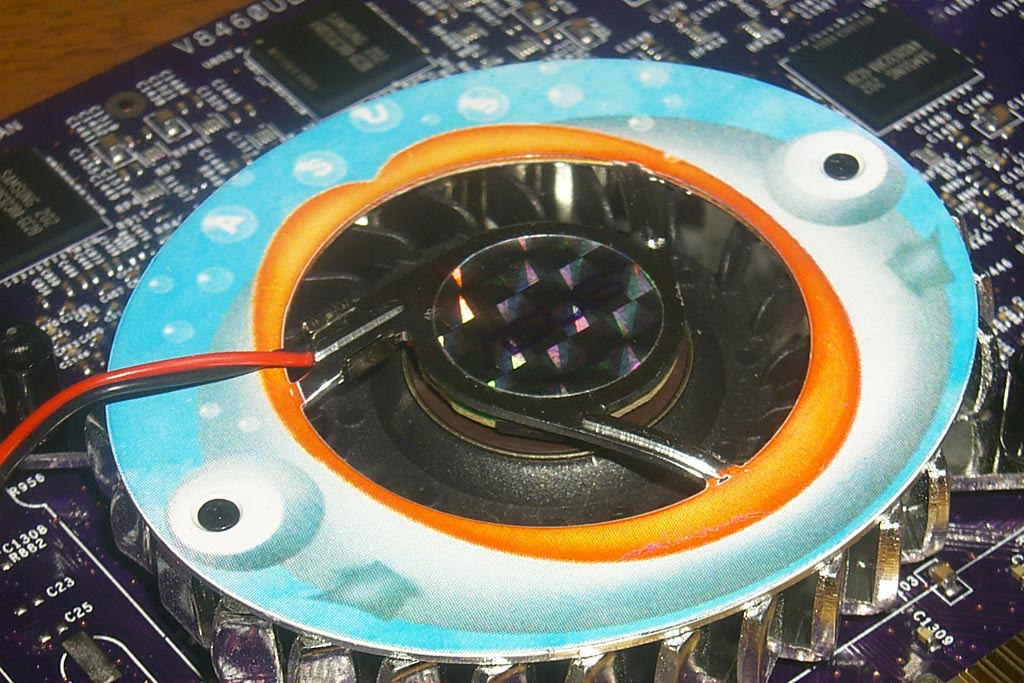 Обратите внимание на то, что изображено на радиаторе! :-) Интересно, о чем думали дизайнеры, когда нарисовали такую "рожу" с пастью, где вместо языка — ASUS? :-)