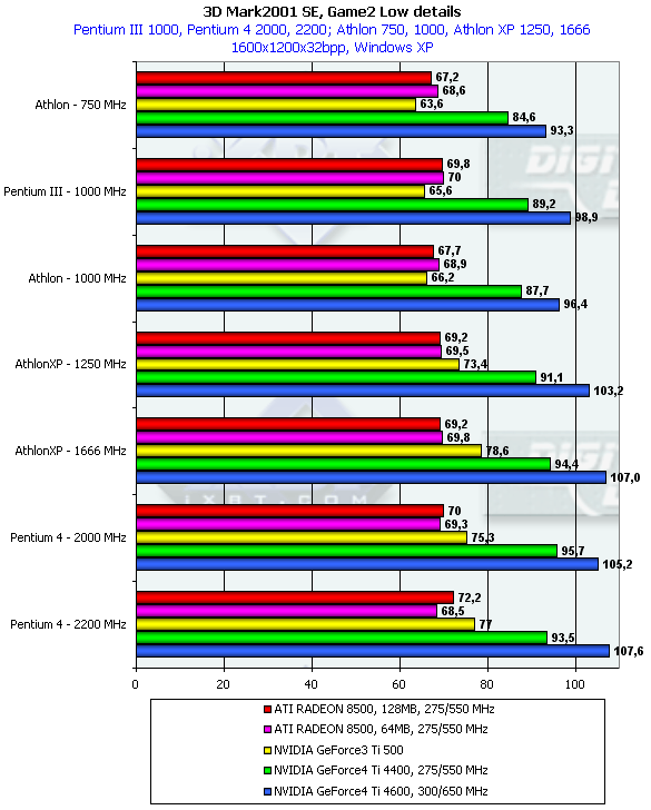 А Game3 говорит, что разрешение 1600х1200 — не помеха для того, чтобы маломощные процессоры и платформы низвели всю мощь GeForce4 Ti.