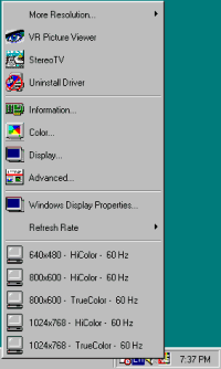 - Поддерживается режим Z-Buffer/Color depth Mixed mode, т.е. имеется возможность использовать при рендеринге в 32-битном цвете 16-битный Z-буфер, что позволяет увеличить производительность в целом. Аналогичной возможностью обладает G400 от Matrox