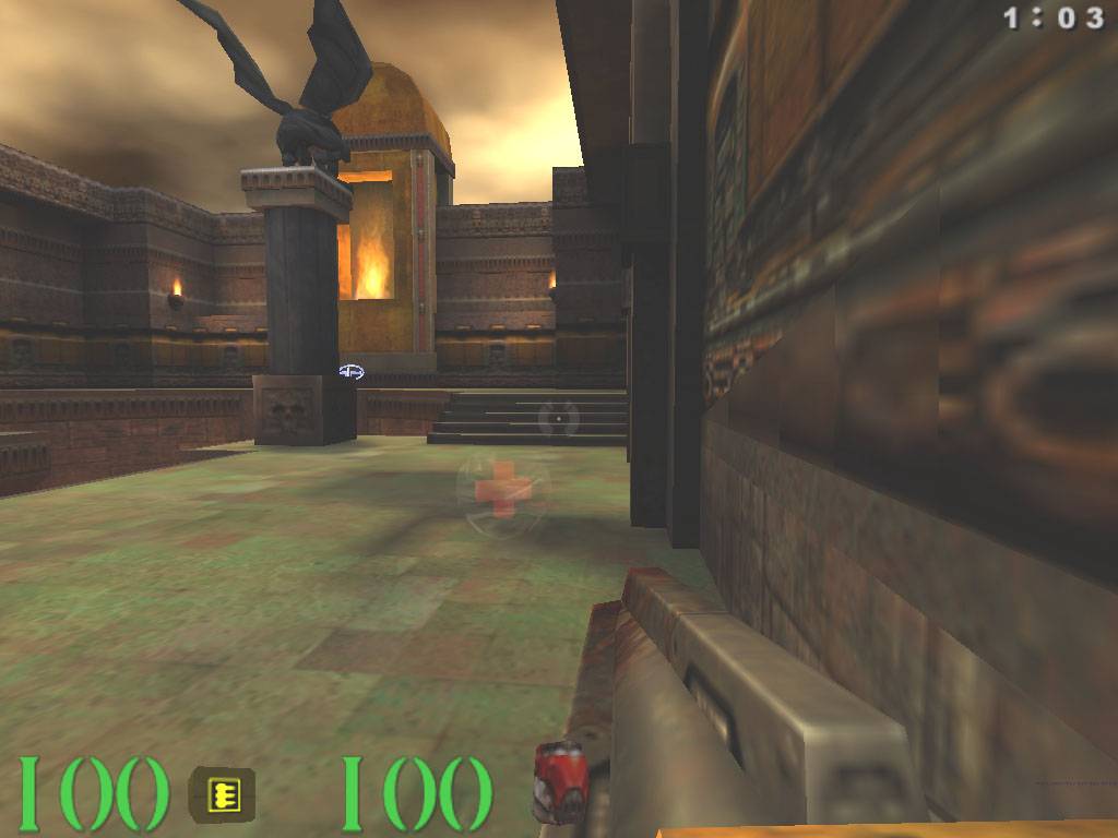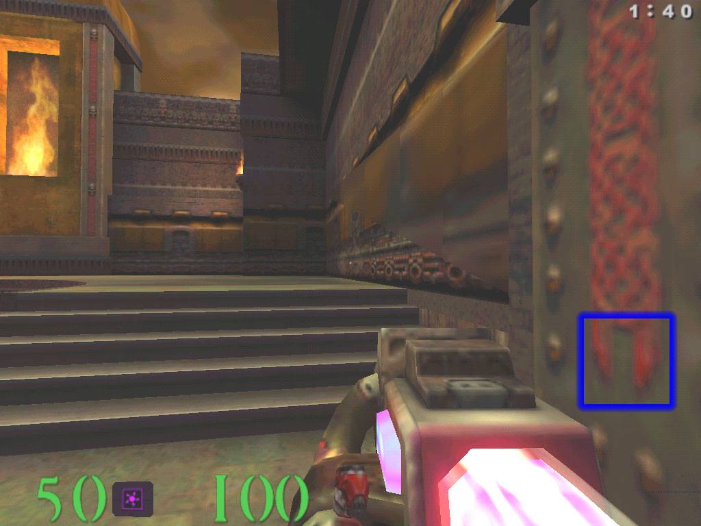 Как это ни странно, этот уровень выглядит совершенно одинаково, что на ATI RAGE 128 PRO, что на NVIDIA Riva TNT2, за исключением лишь убогой реализации трилинейной аппроксимации у чипа NVIDIA Riva TNT2:
