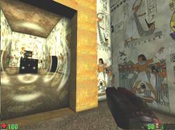Когда мы рассматривали работу чипсета S3 Savage4, то, в данном случае, приводили пример демо-уровня Unreal со сжатыми текстурами с египетскими фресками. Этот же уровень работает теперь и на карте на основе чипа ATI RAGE 128 PRO: