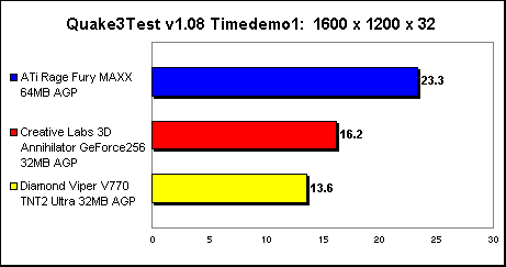 К сожалению, у нас пока нет возможности провести самостоятельные испытания карты Rage Fury MAXX, однако наш английский друг Alex "Sharky" Ross (www.sharkyextreme.com) уже провел тестирование, и его результаты подтверждают наши теоретические выкладки.