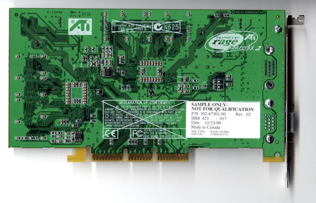 Теперь сделаем небольшое отступление от сути статьи. Обратите внимание на два проводка, которые напаяны на PCB над VGA разъемом. В принципе, наличие таких проводов у не серийной карты, а у т.н. "семпла" не является чем-то из ряда вон выходящим. На то это и семпл, чтобы отработать разводку и работоспособность карты. Однако, судя по всему, именно из-за этих проводов нам не разрешили не то что протестировать карту Rage Fury MAXX, но даже нормально сфотографировать ее. Ну что же, понять действия представителей ATI можно, только вот непонятно, почему ATI относится к различным представителям прессы по-разному? На практике выяснилось, что есть представители прессы "более симпатичные" ATI, чем все остальные. Нельзя тестировать и фотографировать карту Rage Fury MAXX? Нет проблем, только соблюдайте правила игры. Если нельзя, то нельзя всем без исключения. На практике, нельзя оказалось только российской прессе. Зато представителям некоторых зарубежных сайтов, оказывается, можно. Это мы и называем "грамотной маркетинговой политикой". Действительно, зачем уделять России какое-то особое внимание, если объемы продаж продуктов ATI тут очень маленькие? Если Российский рынок не интересен для ATI, то все понятно. Если наш рынок представляет интерес, то тогда ATI выбрала абсолютно верную маркетинговую стратегию. Нужно не давать информацию российской прессе, не предоставлять образцы продуктов для тестирования, много всего обещать, выполнять как можно меньше из обещанного, и тогда скоро у всех российских пользователей будут установлены в компьютерах продукты от ATI. Можно только посочувствовать конкурентам ATI, которые выбрали совершенно иную стратегию и скоро потеряют свои позиции в России.