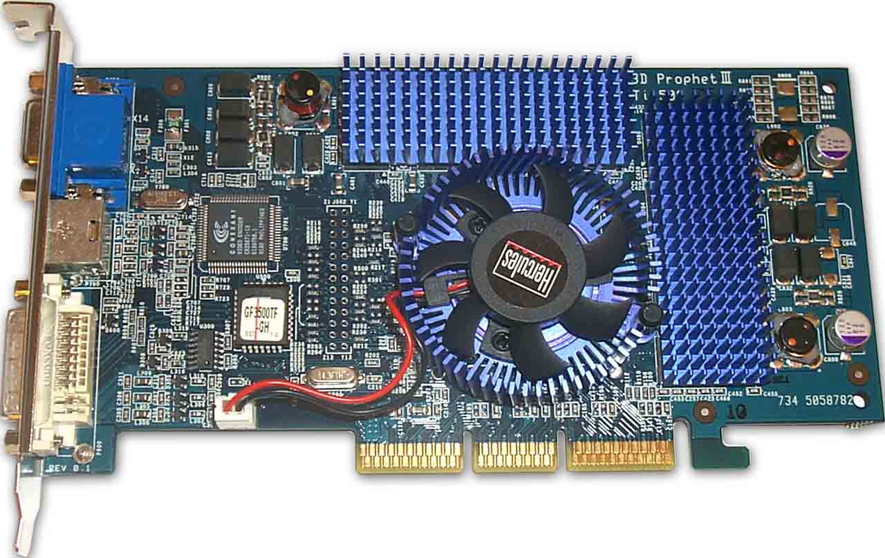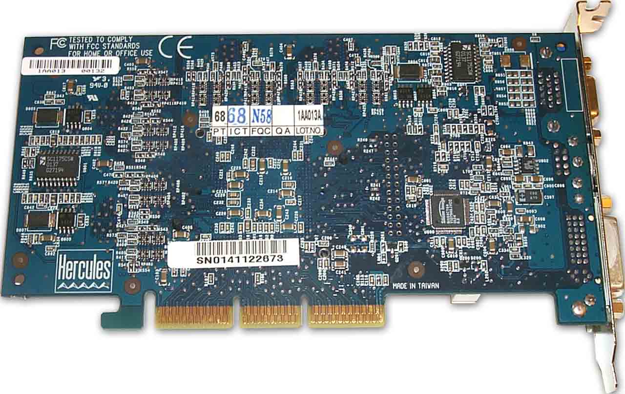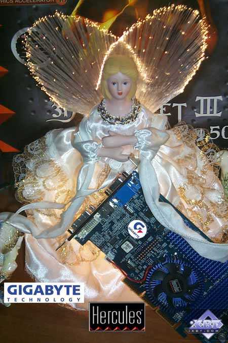 Не поленитесь кликнуть на фотографии Hercules 3D Prophet III Titanium 500 (вид спереди), и вы увидите надпись на микросхеме BIOS, которая гласит: GF3500TF (а так называется карта от Gigabyte). Забавно, да? :-)