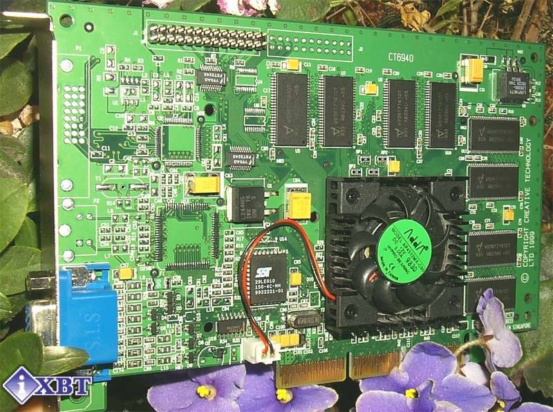 Нам удалось протестировать одну из первых карт на чипе NVIDIA GeForce 256, Creative 3D Blaster Annihilator (Уничтожитель). Эта плата внешне очень похожа на свою предшественницу Creative 3D Blaster Riva TNT2 Ultra, естественно, имеет AGP форм фактор, интерфейс AGP 2x/4x и те же 32 Мбайта 5.5 нс SDRAM, расположенной в 16-ти микросхемах по обеим сторонам карты: