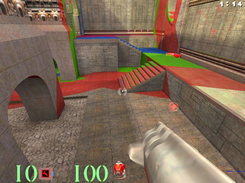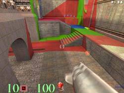 Обратили внимание на форму MIP-уровней? У NVIDIA GeForce 256 они округлые, расположены полукругом, в центре которого находится игрок. Естественно, что эта реализация разбиения сцены на MIP-уровни наиболее верная, поскольку границы видения наших глаз также создают полусферу. А у NVIDIA Riva TNT2 эти уровни получаются угловатыми. Прошу заметить, что эти результаты получены на одних и тех же драйверах, а это значит, что проблема решена на аппаратном уровне, что не может не радовать.