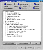 Все настройки строго ориентированы на управление работой карты в 2D-режимах, очень удобно выполнен интерфейс по активизации разных режимов DualHead. 3D-настроек очень мало, по сути, только включение режима Bus-Mastering, да активизация 32-битного Z-буфера. Впрочем, то же самое мы видели еще при исследовании G400.