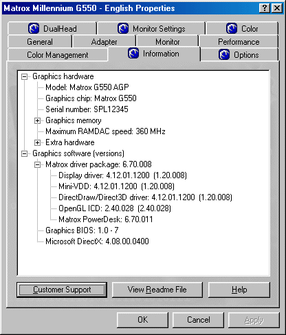 Должен отметить, что все вышеперечисленные возможности Matrox G550 доступны не только в линейке Windows 9x, но и в Windows 2000.