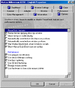 А вот при попытке изменить частоты начинается полная чехарда. Ползунки частот скачут как ненормальные, цифры могут быть совершенно нелепыми. Поэтому, откровенно говоря, я так и не понял, насколько я разогнал карту. Прирост в производительности есть, но какие при этом частоты - мне сказать трудно, поскольку PowerStrip показал 166 МГц работы памяти, а ядра — 178 МГц (я не смогу поверить, что G550 смог легко со 126 МГц разогнаться до 178 МГц). Хотя, не столь значительные приросты в производительности свидетельствуют о том, что частота работы памяти является главным (как у NVIDIA GeForce2 MX). Просто установить другие частоты оказалось практически невозможным.