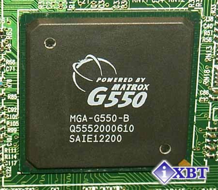 Карта Matrox Millennium G550 имеет AGP x2/x4 интерфейс, 32 Мб DDR SGRAM памяти, размещенной в 2-х микросхемах на лицевой стороне PCB.