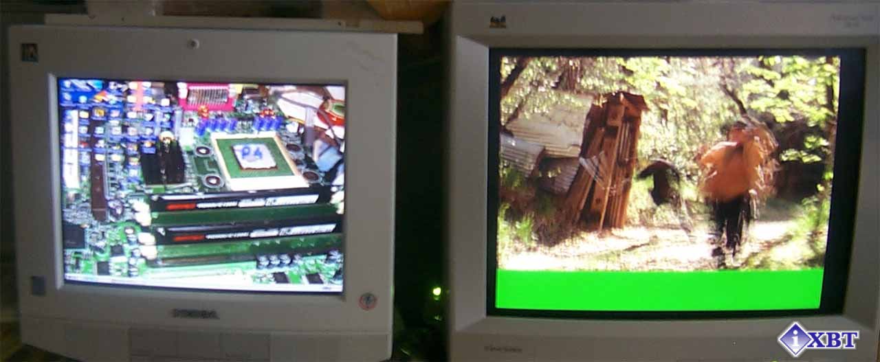 Таким образом, мы можем получать изображение на двух приемниках (например, обычных мониторах), используя возможности DualHead-технологии, которая досталась в наследство от G400: