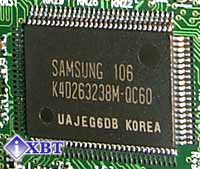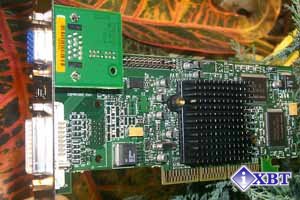 Микросхемы памяти марки Samsung, время выборки — 6 ns, что соответствует 166 (333) МГц. На этой частоте память и функционирует. Почему такое необычно малое число микросхем? Первопричина в том, что сейчас на рынке много серийно выпускаемых 32-битных модулей большой емкости (16 мегабайт), а для организации 64-битной шины достаточно всего 2-х таких микросхем. Конечно, если помечтать и предположить, что на обороте карты есть еще две таких же микросхемы, то кроме 64-х мегабайт ОЗУ мы имели бы, прежде всего, 128-битную шину обмена с DDR-памятью! Да, графический процессор не рассчитан на такую шину, да и разводка платы... Но это же просто мечты. Тогда и скорость в 3D была бы... Впрочем, мы уже забегаем вперед.