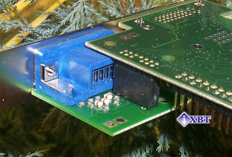 На фотографии карты хорошо видно, что гнездо находится выше самой карты, оно держится на дочерней платке, которая через разъем соединяется с основной PCB. Вам это ничего не напоминает? Мне — сразу напомнило SIF от SUMA, который подчас не только не улучшал качество картинки, но даже способствовал замыливанию изображения. Уже закрались подозрения? Но не все сразу... Когда дойдем до результатов тестирования, тогда и поговорим об этом.