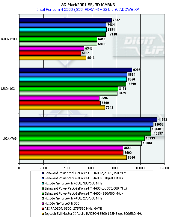 - 3DMark2001 SE (MadOnion) синтетический тест, демонстрирующий работу платы в DirectX 8.1;