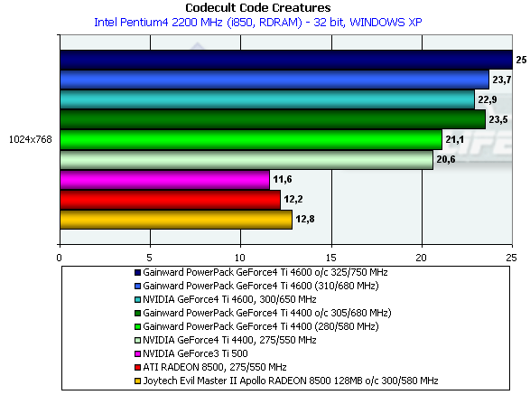 | Gainward PowerPack GeForce4 Ultra/750XP Golden Sample | 310/680 -> 325/750 MHz |