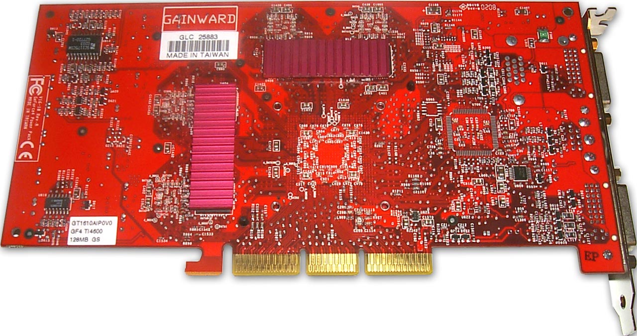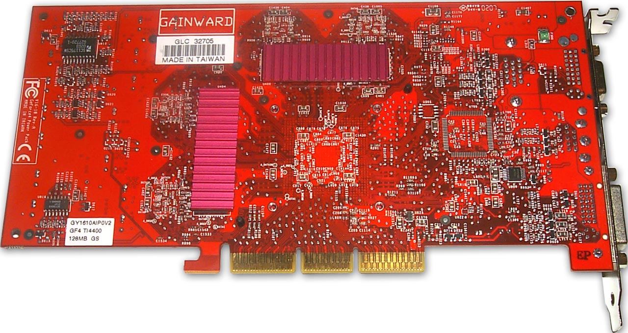 Затем можно отметить, что Gainward PowerPack GeForce4 Ultra/700XP (на базе GeForce4 Ti 4400) выполнена на базе дизайна от GeForce4 Ti 4600 (хотя там отличия минимальны и заключаются в отсутствии пары конденсаторов). В остальном наблюдаем полное соответствие эталонному дизайну.