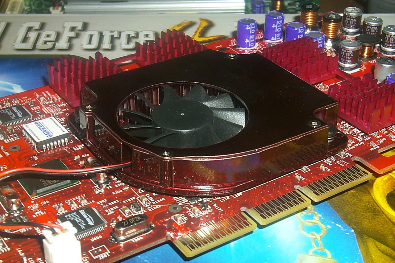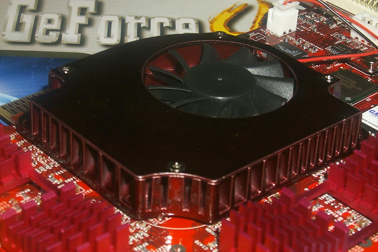 Ну что ж, вернемся к рассмотрению особенностей карт. Как я уже говорил ранее, в последнее время самым примечательным элементом конструкции плат стал кулер. Подчас на нем вымещают свои дизайнерские таланты инженеры той или иной фирмы-производителя. В случае карт на базе GeForce4 Ti мы наблюдали сильное отступление от референс-дизайна охлаждающего устройства пока только на карте от Leadtek. А что же нам предлагает компания Gainward?