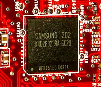| Память производства Samsung со временем выборки 2.8ns, что соответствует примерно частоте работы 357 (714) МГц. В режиме Extremal частота работы карты составляет 310/340 (680) МГц, в обычном режиме — 306/330 (660) МГц. | ![]() |