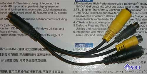 Поддержкой этих функций занимается энкодер-декодер от Philips серии 7100, его мы могли уже видеть на карте ASUS AGP-V8200 Deluxe. Также между двумя гнездами VGA, обеспечивающими TwinView, можно заметить гнездо, очень напоминающее S-Video для TV-out, однако в него подключается специальный переходник-разветвитель (он входит в комплект поставки), через который при помощи как S-Video, так и RCA-коннекторов обеспечивается прием аналогового сигнала, а также вывод на ТВ: