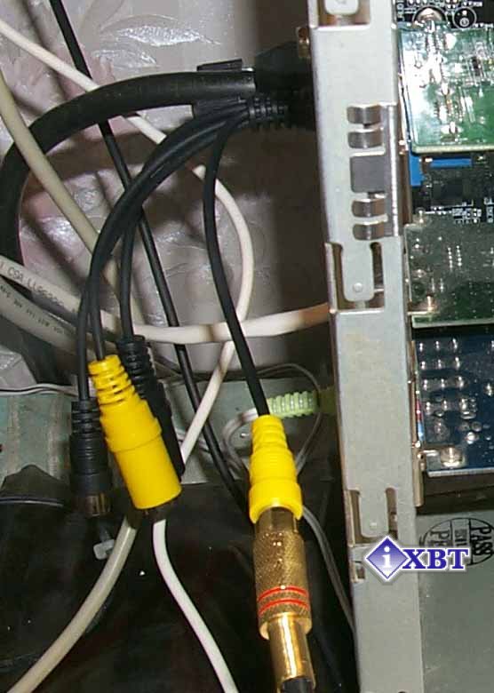 Как я уже говорил выше, Golden Sample наделен возможностью приема аналогового сигнала и его оцифровки. Это возможно благодаря наличию чипа из серии Philips 7100, а также переходника-разветвителя, черные разъемы которого и рассчитаны на прием видеопотока (желтые разъемы — для TV-out).