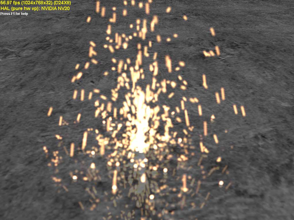 Еще один тест — PointSprites. Система частиц, отражающихся от поверхности. Результаты приведем без