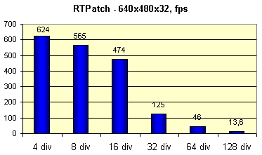 На результатах хорошо заметна задержка в такт, вызываемая использованием более 2-х текстур одновременно у GeForce3 и странное, резкое падение производительности в случае шейдера максимальной длины. Я не нашел этому никакого разумного объяснения, кроме как наличия перезагрузки комбинационного конвейера, например, при достижении края полигона. Как известно, время перезагрузки зависит от количества стадий. Но, в таком случае неясно, почему результаты первых 4 шейдеров практически идентичны.