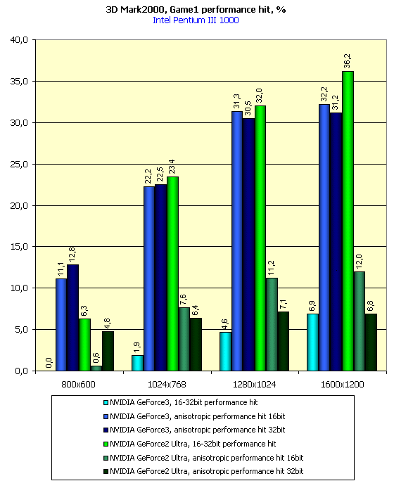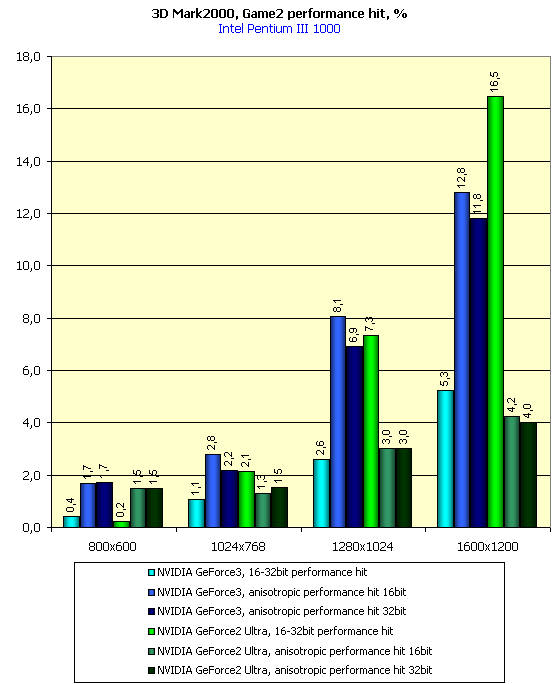 Интересно отметить, что на GeForce2 Ultra в 16-битном цвете включение анизотропии минимальным