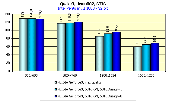 S3TC на производительность мы покажем на диаграмме ниже (16-битный цвет не привожу, так как,