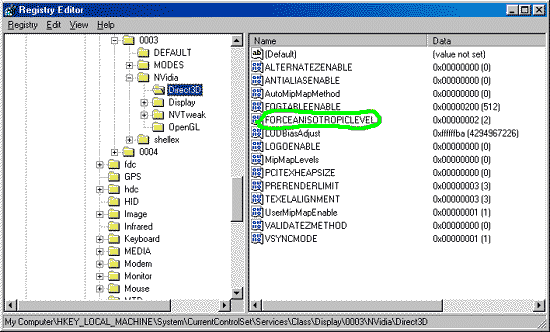 Registry, создав переменную FORCEANISOTROPICLEVEL (выделено зеленым) и дав ей значение 2, мы получаем
