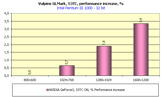 Нетрудно убедиться, что некоторые огрехи имеются и в данном случае, однако не надо забывать и про то, что сама технология S3TC предусматривает некоторую потерю в качестве при ее использовании. Потери в качестве будут минимальными и применение S3TC принесет дивиденды, если в игре используются специально изготовленные и заранее скомпрессированные текстуры. Что касается данного случая, то по самой первой диаграмме видно, что включение S3TC в GLMark дает очень мало:
