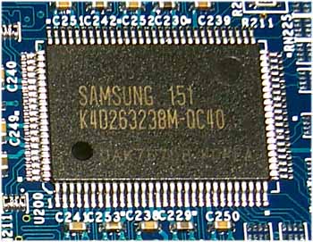 Как и в предыдущем случае, на карте используется более быстрая, чем требуется, память производства Samsung со временем выборки 4ns, частота работы которой по номиналу составляет 250 (500) МГц. Фактическая частота работы памяти составляет 200 (400) МГц, что отвечает рекомендациям NVIDIA. Графический процессор имеет частоту 270 МГц.