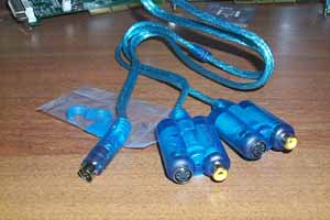 И действительно, данная карта обладает VIVO. В комплекте поставки можно увидеть переходник-разветвитель, при помощи которого к видеокарте можно подключить приемники и источники видеосигналов: