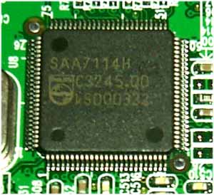 Из интересных особенностей данной карты (опять же, ее левой части) отметим наличие видеопроцессора Philips серии 7100, который обычно отвечает за VIVO (VideoIn VideoOut):