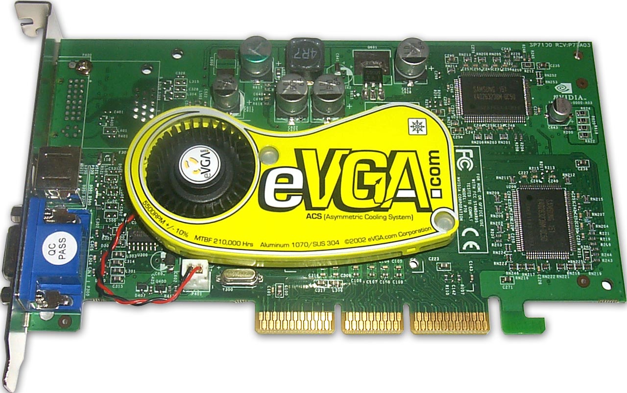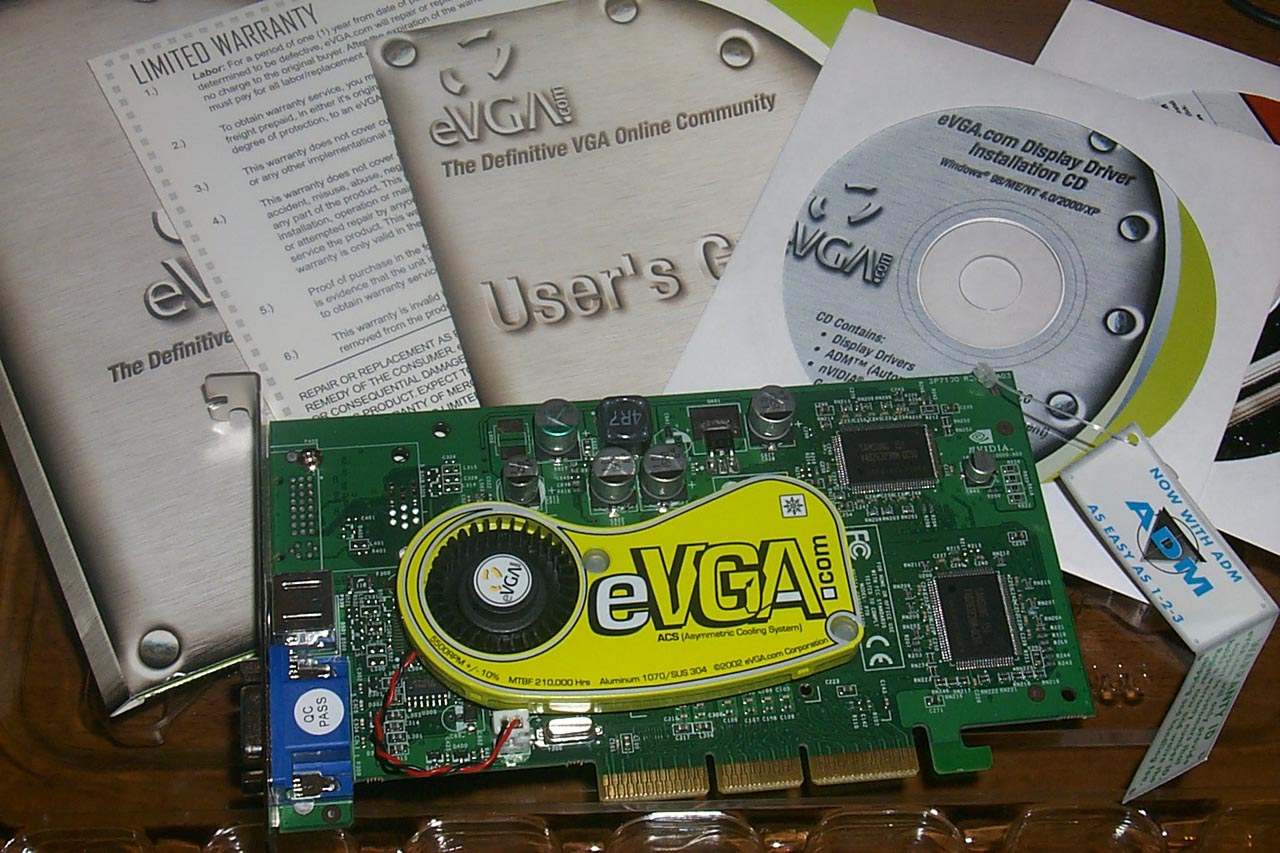 Что же касается самой фирмы, то это частная компания (наподобие Matrox Electronics System, подразделение которой в виде Matrox Graphics широко всем известно). Даже по ее названию видно, что она занимается выпуском только видеокарт для PC-систем. Если ознакомиться со списком выпускаемой продукции, то становится понятно, что фирма ориентируется в настоящее время только на производство карт на базе графических процессоров от NVIDIA, причем присутствует полная гамма, начиная от TNT2M64 и до GeForce4 Ti. И не случайно, что eVGA является официальным партнером NVIDIA.