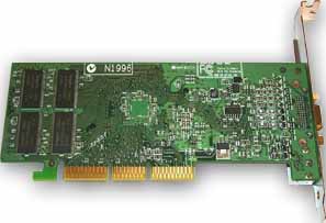 Карта снабжена AGP x2/x4 интерфейсом, 64 МБ локальной DDR SDRAM памяти (четыре микросхемы, размещенных на лицевой и оборотной стороне PCB).