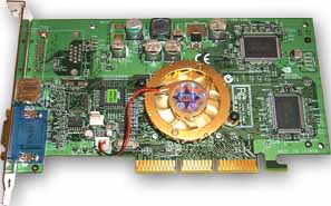 Как я уже отмечал в обзоре GeForce4 Ti, впервые на обычных видеокартах были использованы микросхемы памяти в новой BGA-упаковке. Этот форм-фактор обеспечивает более эффективное охлаждение чипов и память не перегревается. Правда, если это касается вышеупомянутых GeForce4 Ti, то имеется в виду "при работе на своей штатной частоте". А вот на MSI GF4MX460 установлены микросхемы более быстрые, чем надо, ибо номинальная частота работы карты — 300/275 (550) МГц.