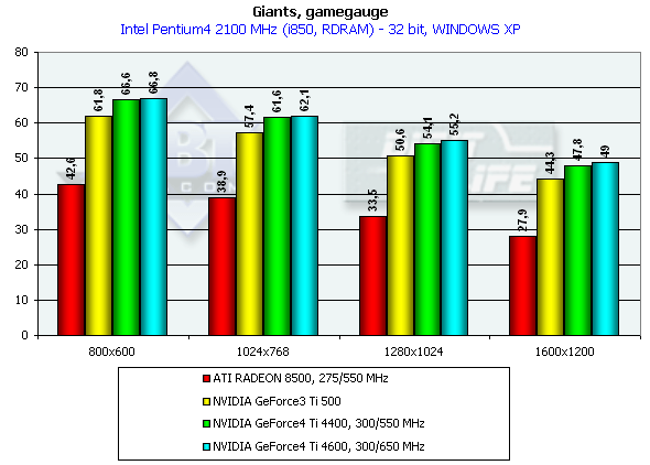 58.7%, у GeForce4 Ti 4600 — 69.5% ! Любопытно, что данный тест предъявляет сильные требования именно к