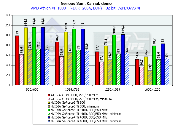 RADEON 8500). Карты тестировались только в 32-битном цвете.