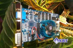 К сожалению, фирма Gigabyte использует клеящиеся прокладки из алюминия для крепления кулера на чипе, хотя крепеж явно присутствует, поэтому я не смог увидеть маркировку на процессоре. Почему к сожалению? Да просто потому, что как правило, при посадке радиатора на клей образуются пустоты (воздушные пузыри), которые мешают термопередаче (это не потому, что клей плохой, а потому что процесс оборудования карт системой охлаждения в этом случае полностью автоматизирован, и качество приклеивания не проверяют). Этих проблем нет при использовании термопасты, поскольку эта вязкая среда может прекрасно заполнять пустоты между радиатором и чипом (разумеется, в случае добросовестного снабжения термопастой охлаждающего устройства). Но в силу дешевизны установки радиатором на клею первый способ очень широко распространен.