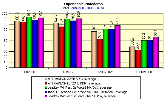 - Rage Expendable (timedemo) — игровой тест, демонстрирующий работу платы в Direct3D в режиме мультитекстурирования.