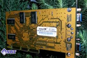 Карта Inno3D Tornado GeForce2 MX 64MB Twinview имеет AGP x2/x4 интерфейс, 64 Мб SDR SDRAM памяти, размещенной в 8-ми микросхемах на лицевой и обратной сторонах PCB.
