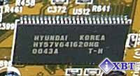Микросхемы памяти производства фирмы Hyundai, маркировка T-H меня сразу же смутила, и я посмотрел на сайте производителя памяти, что же это за память такая. Результат меня убил — это 133-мегагерцовые чипы. То есть соответствует примерному времени выборки в 7.5 ns. Что это? Это и есть установка "более дешевой" памяти? Справедливости ради я должен сказать, что частота, на которой работает память, — 166 МГц, то есть все по номиналу. Отсюда следует вывод, что про разгон можно забыть, раз память уже разогнана производителем, а опыт исследований подобных карт показывает, что без поднятия частоты работы памяти разгонять сам GPU нет ни малейшего смысла. Так и хочется вспомнить карты на NVIDIA Riva TNT2Ultra от Innovision, которые мало того, что комплектовались более тормозной памятью, чем положено по штату, так еще и занижалась частота ее работы. Дизайн платы, как можно заметить, очень сходен с тем, который мы могли видеть у PCI-модели линейки GeForce2 MX от Innovision (желающие могут прочитать этот материал). Тем не менее, отличия имеются. Прежде всего, они связаны с наличием на карте двух гнезд VGA, а значит, и поддержкой технологии TwinView. На лицевой стороне PCB можно заметить микросхему второго RAMDAC.