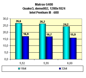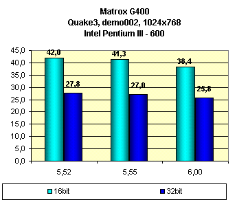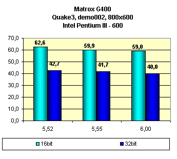 На конец июля 2000 года последняя версия драйверов от Matrox — PowerDesk 6.01(бета), однако эта версия очень сильно глючит, поэтому использовались версии драйверов до 6.00 включительно: Matrox PowerDesk 5.52, 5.55 и 6.00, а в игре Quake3 представлен также TurboGL драйвер версии 1.30.